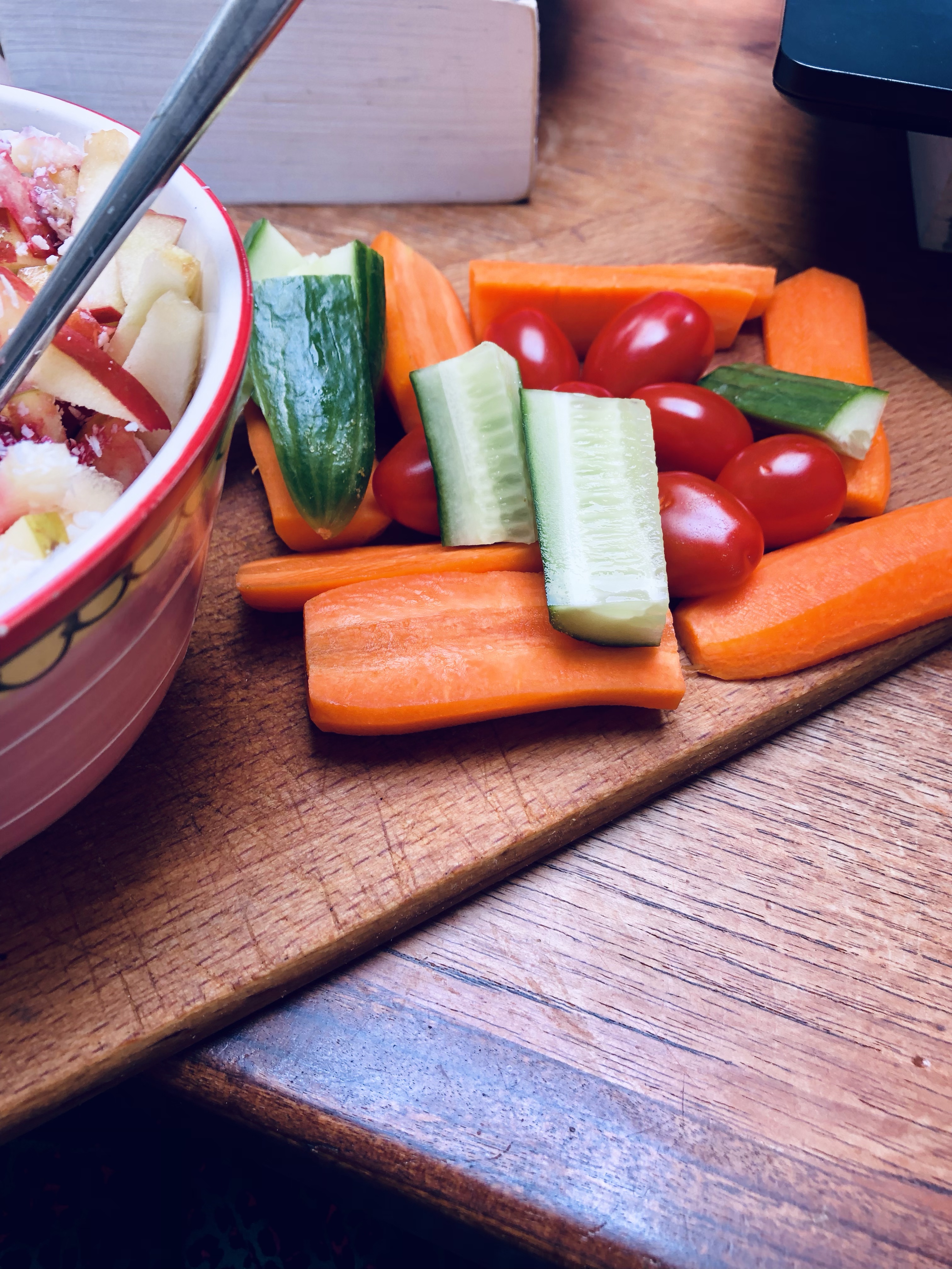 Daarnaast ben ik net een konijn, ik hou van groente! Het kan niet snel te veel zijn. Bij mijn borrelplanken ontbreken nooit stukjes komkommers en tomaatjes of worteltjes.